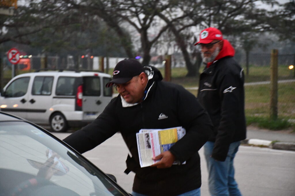 Nesta manhã, a diretoria do Sintricom, representada por Francisco Eudes, Alex Carvalho, Luiz Ricardo e Jorge Costa, realizou uma panfletagem informativa junto aos trabalhadores da REVAP. O material distribuído detalhava as condições do Acordo de Parada, que inclui: