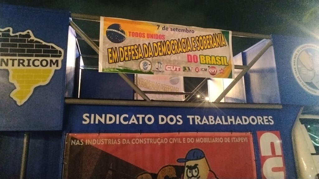 No dia 7 de setembro de 2025, data que simboliza a luta pela independência e soberania do Brasil, o Sintricom (Sindicato dos Trabalhadores nas Indústrias da Construção Civil e do Mobiliário) uniu-se a centrais sindicais, movimentos populares e milhares de brasileiros em manifestações históricas em defesa da democracia, contra a anistia a golpistas, pelo fim da escala 6×1 e em resposta às ameaças à soberania nacional. Os atos, organizados pela CUT, Frente Brasil Popular, Frente Povo Sem Medo e Grito dos Excluídos, ocorreram em diversas cidades do país, reforçando o compromisso da classe trabalhadora com o futuro do Brasil.