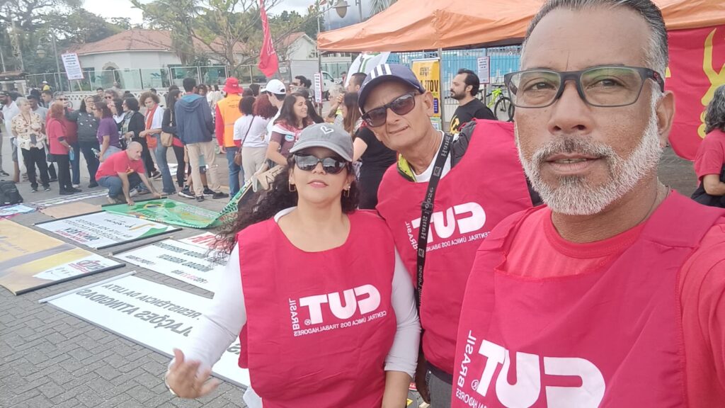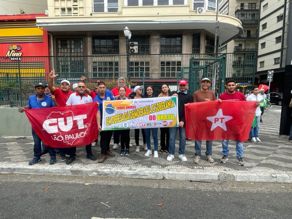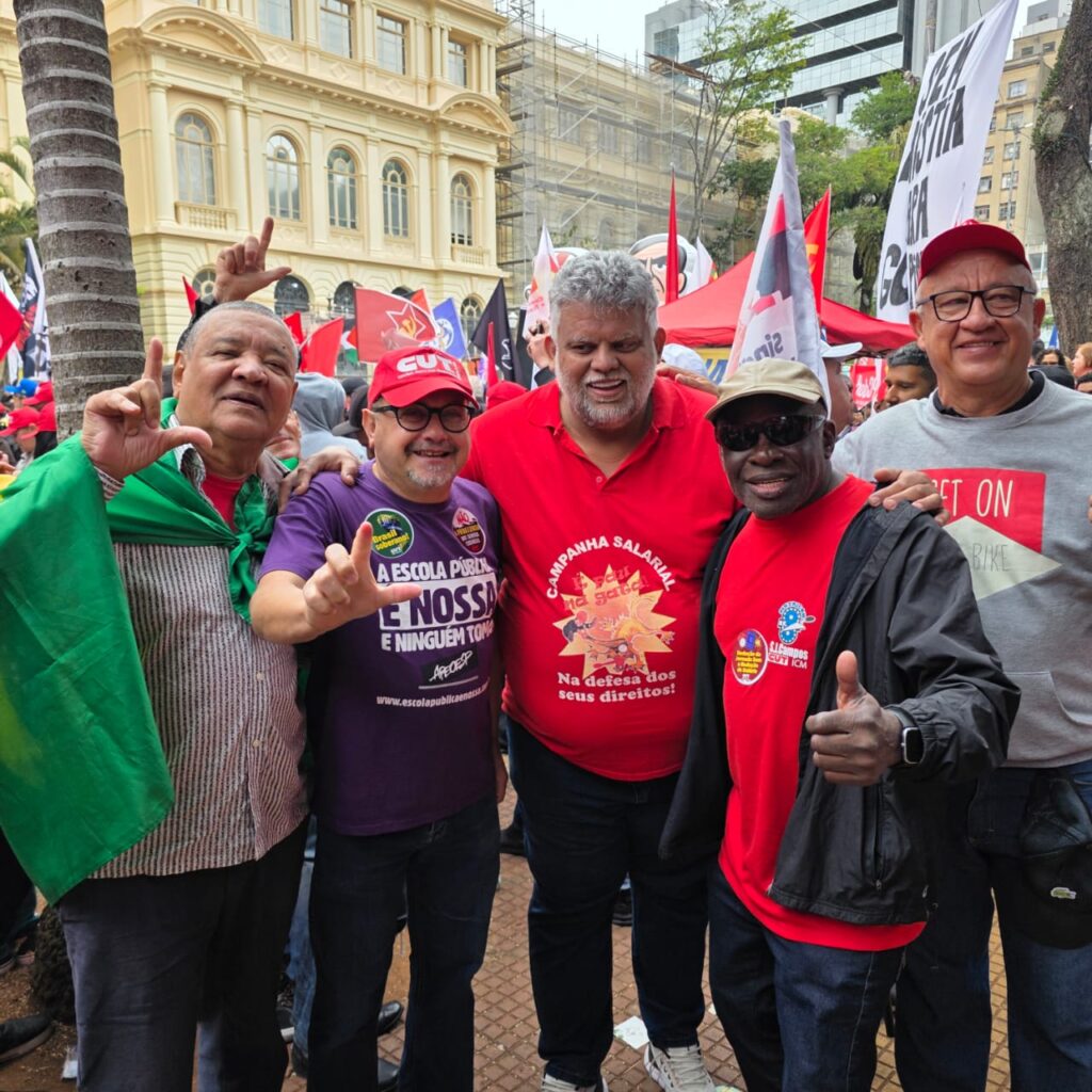 Em São Paulo, o ato concentrou-se na Praça da República, a partir das 9h, e contou com a presença massiva de sindicalistas, militantes e representantes do governo federal. A diretoria do Sintricom esteve no ato liderada pelo presidente Marcelo da Costa e pelos diretores Reginaldo Garcia, Francisco Eudes, Jorge Costa, Evane da Silva, Alex Alexandre, Cicero de Souza e Luiz Ricardo. Com cartazes e bandeiras, os manifestantes entoaram palavras de ordem como “O Brasil é dos brasileiros, o povo é quem manda aqui”, rejeitando veementemente qualquer tentativa de anistia ao ex-presidente Jair Bolsonaro e seus aliados, acusados de crimes contra a democracia.
