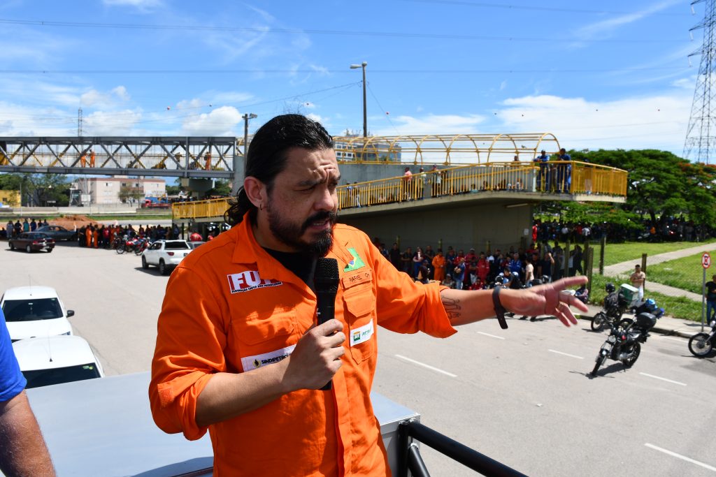 “O Sintricom está aqui hoje para reafirmar que a luta dos petroleiros é também a nossa luta. Esta é uma greve nacional, que mostra a força e a organização da categoria petroleira em todo o Brasil. Manifestamos total solidariedade ao Sindipetro Litoral Paulista, ao seu presidente Rafael Prado, e a todos os trabalhadores e trabalhadoras petroleiros da Revap. É importante destacar que não estamos sozinhos: os Sindicatos dos Condutores do Vale do Paraíba, dos Papeleiros de Jacareí, dos Metalúrgicos de Taubaté e o Sindicato da Alimentação de São José dos Campos também estão apoiando essa luta.