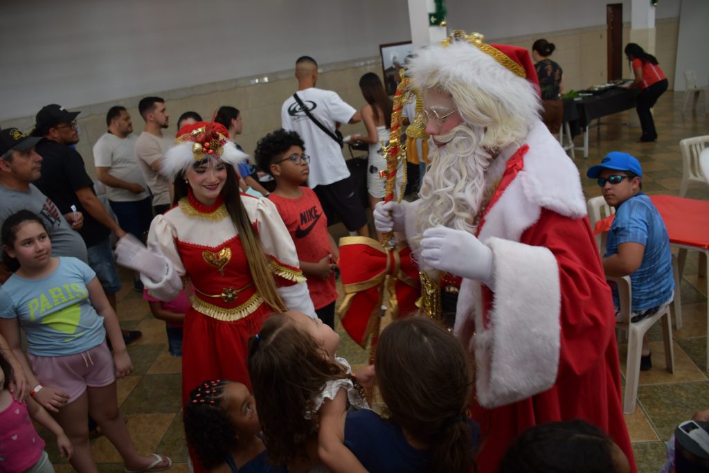 Um dos momentos mais aguardados foi a chegada do Papai Noel e da Mamãe Noel. A dupla emocionou crianças e adultos, posou para fotos, distribuiu abraços e foi recebida por uma multidão que aguardava ansiosa, tornando o momento ainda mais especial.